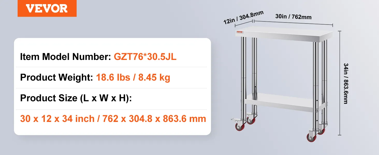 The VEVOR work table can handle heavy loads, supporting up to 700 lbs. This durability makes it a reliable choice for any commercial kitchen or restaurant. Its robust build means it can hold heavy kitchen equipment, supplies, or large quantities of food without bending or breaking. This strength is essential for busy kitchens where reliability is paramount. The sturdy construction ensures that the table stays stable and secure, allowing staff to work efficiently and safely. When investing in kitchen gear, durability matters, and this table meets those high standards.