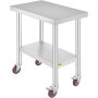 The VEVOR stainless steel work table comes with wheels. These are sturdy and lockable, ensuring stability when you need it. Move your table effortlessly around your kitchen or workspace. Perfect for dynamic kitchen environments where mobility is essential. The wheel makes it easy to clean around and under the table. Shift the stainless steel work table to different areas of your cooking or restaurant as needed. Double-locking keeps the tables secure when stationary. Simplifies your workflow by providing mobile workspace solutions. Easy to position based on your cooking or preparation needs. An excellent solution for kitchens with changing layouts or limited space.