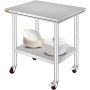 The VEVOR stainless steel work table is equipped with four caster wheels. These wheels help you move the table anywhere you need it. In case you want to keep this table fixed in its place, and avoid its movement, its integrated brakes will help you do so. You can secure these brakes on the wheels to prevent them from rolling and shifting when stability is required.