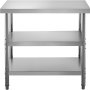 The stainless steel material of the table is both durable and easy to clean. This is important for maintaining hygiene in food prep areas. The smooth surface resists scratches and stains, ensuring a pristine look over time. Cleaning is simple: just use a dry cloth and mild detergent. Its resistance to rust and corrosion ensures long-term use. This durability makes it a dependable choice for both home and commercial settings. Easy maintenance ensures that the table always looks and performs its best.