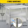 It has the most space-efficient dimensions. The VEVOR outdoor food prep table has optimal dimensions for space performance. At 35.8 x 17.7 x 33.7 inches, it fits well in tight spaces without sacrificing functionality. This table's compact design makes it ideal for small kitchens, patios or laundry rooms. Although its size is small, this table offers ample surface area for various tasks. Adjustable undershelves provide additional storage, maximizing the table’s utility. This design ensures that you can organize your workspace effectively, keeping essential items within reach.