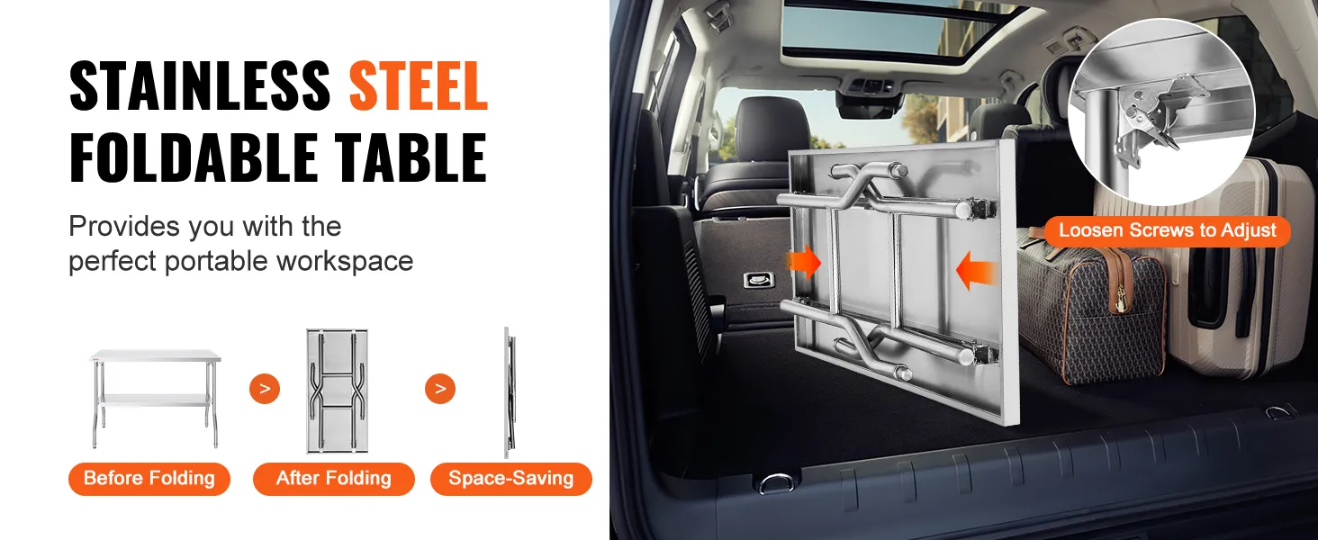 It is perfect for multiple applications. Use it in kitchens, workshops, or outdoor settings. Its durable stainless steel design ensures it can handle heavy loads. The table is ideal for both home and commercial use. Whether you are preparing food, working on art projects, or setting up a mobile business, this table fits perfectly. You get a dependable workspace for various tasks. Its silver stainless steel finish adds aesthetic appeal to any environment. This table's versatility makes it an essential addition to your setup. Our strong construction guarantees long-lasting use in different scenarios. Our commercial kitchen work table meets the needs of different users efficiently.