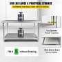 This kitchen prep table is of superior strength, providing a loading capacity of 330 lbs on the top shelf and 220 lbs on the undershelf without shaking. It offers a place to store frequently used items, such as ovens, towels, and mixing bowls.