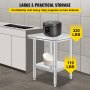 Whether you have a small kitchen or not, this table is ideal for small spaces. Its compact size fits well in limited spaces. Despite being compact, it offers plenty of work and storage space. The stainless steel prep table surface is easy to clean. You can wipe it down quickly after use. It is perfect for busy kitchen environments. The table design ensures that it doesn't take up too much room. It is a practical solution for tiny kitchens. The simple-to-clean surface ensures that it stays tidy. The table design is both functional and space-saving.