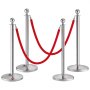 VEVOR stanchion post: stainless steel posts with red velvet rope, rust-resistant, durable, 0.8mm thickness.
