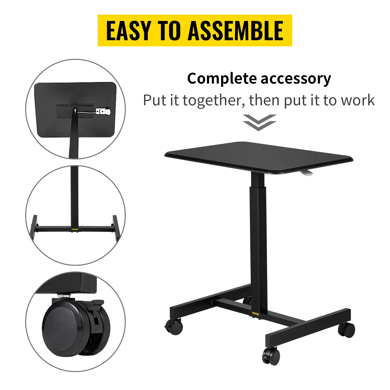 Are you tired of sitting all day? Try VEVOR's rolling laptop desk! The height can be adjusted smoothly from 76 to 110 cm for work while sitting or standing, according to your preference. The 65 x 48 cm large desktop surface provides enough room to place your work materials. Four stable casters make it easy to roll around on the floor, and two lockable casters will keep the desk fixed in a stationary position. Enjoy a healthy working environment !