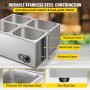 Whether you're serving soup, spaghetti, stew, or oatmeal, this electric food warmer is ideal for your buffet, restaurant, or snack bar. The steam table for restaurants, including four pans and lids, is built with 304 stainless steel, ensuring long-lasting use and easy cleaning. The 34 Qt/32L capacity allows this electric buffet food warmer to heat more foods at one time. Its adjustable temperature from 86℉ to 185℉ (30℃ to 85℃) keeps dishes warm as you wish.