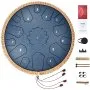 Meticulously crafted from carbon steel, this 14-inch steel tongue drum in D major covers 15 notes in a deep navy color. It is ideal for beginners to get started quickly, delivering the ultimate in musical enjoyment with its pleasing, clear, and long-lasting tone.