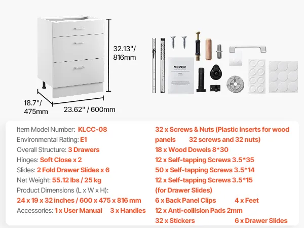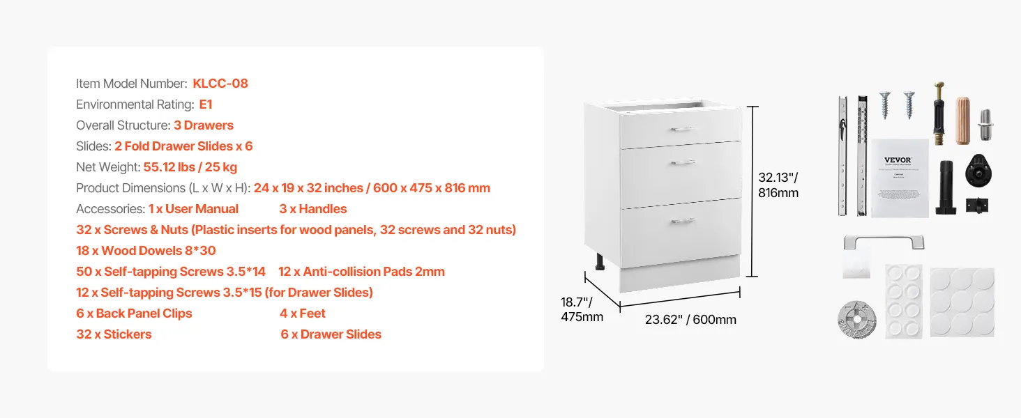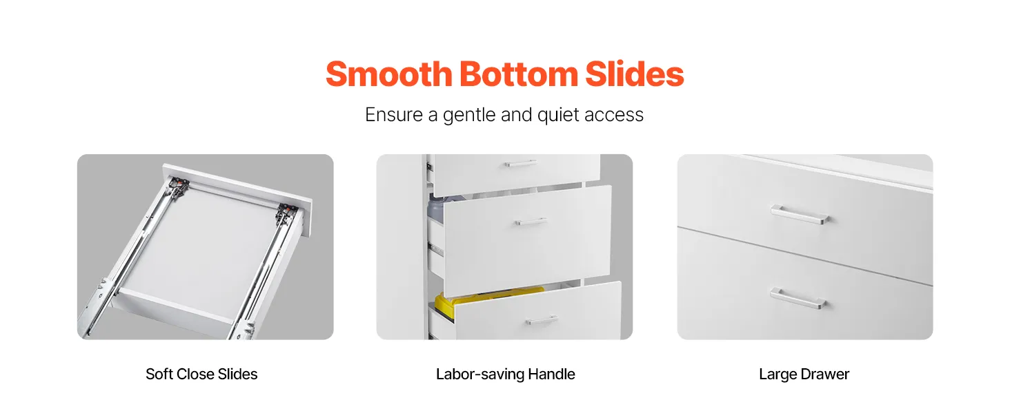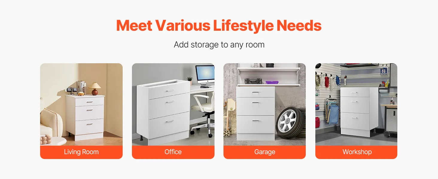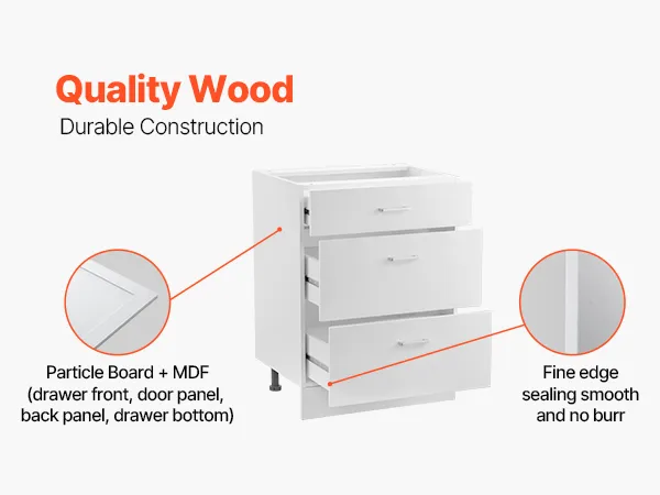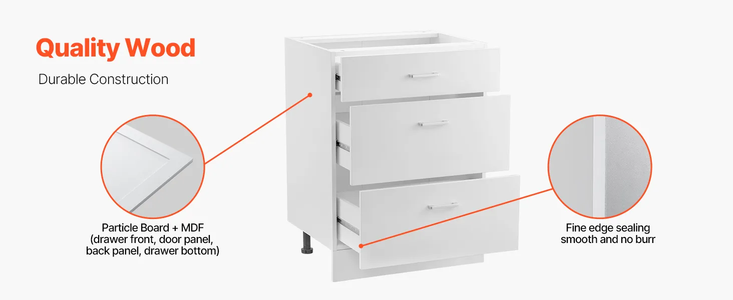 Easy to Clean: The surface features 3M stickers, paired with finely crafted interiors to enhance the overall aesthetics and durability of the storage cabinet. It’s also easy to clean—simply use a soft cloth to maintain the surface. Avoid sharp objects that could scratch and damage the appearance of your base cabinet