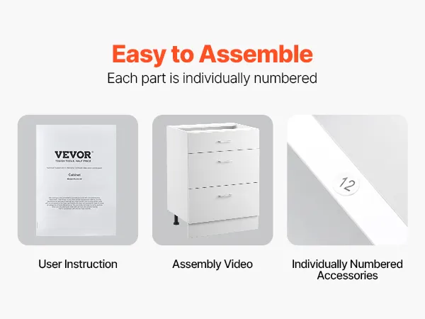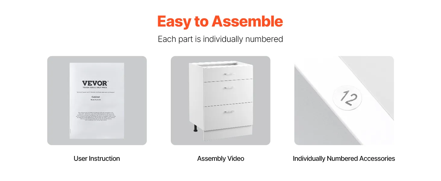 Easy to Assemble: Our unassembled cabinet is easy to assemble. The instruction manual is detailed, and each part is individually numbered for easy identification. The door direction is adjustable to suit your needs. The cabinet does not include a top surface