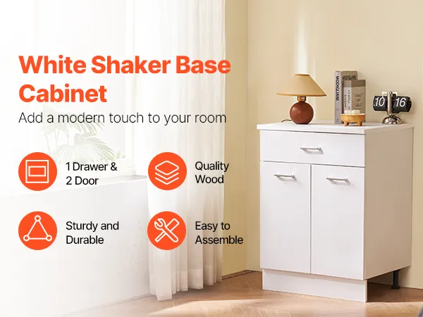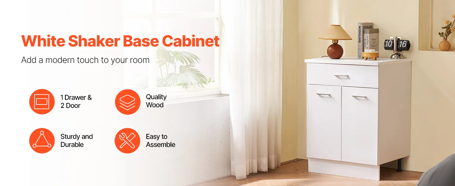 VEVOR White Shaker Base Cabinet with Drawer, 24-Inch Unassembled Drawer Base Cabinet, 24" W x 19" D x 32" H Ready to Assemble Cabinet with Soft-Close Doors and Adjustable Shelf, for Home Office