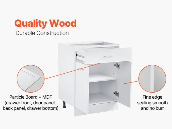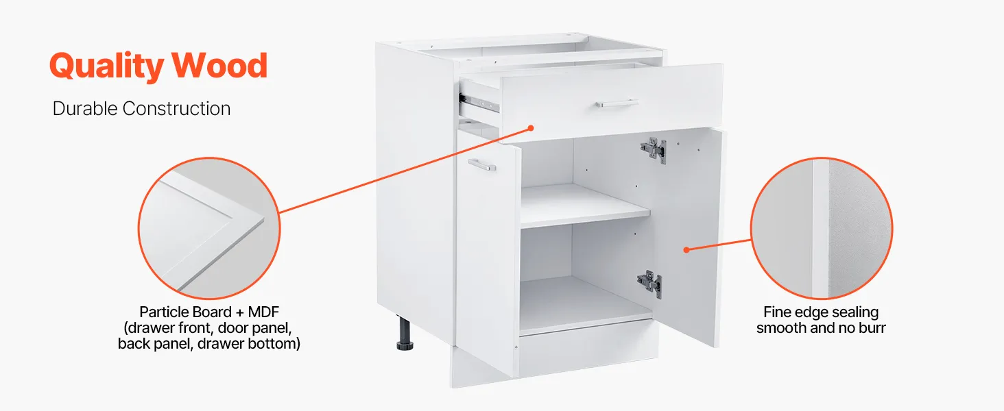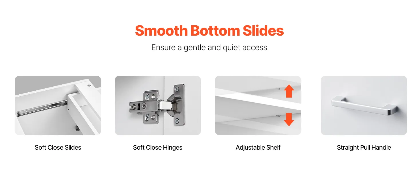 Easy to Clean: The surface features 3M stickers, paired with finely crafted interiors to enhance the overall aesthetics and durability of the storage cabinet. It’s also easy to clean—simply use a soft cloth to maintain the surface. Avoid sharp objects that could scratch and damage the appearance of your base cabinet