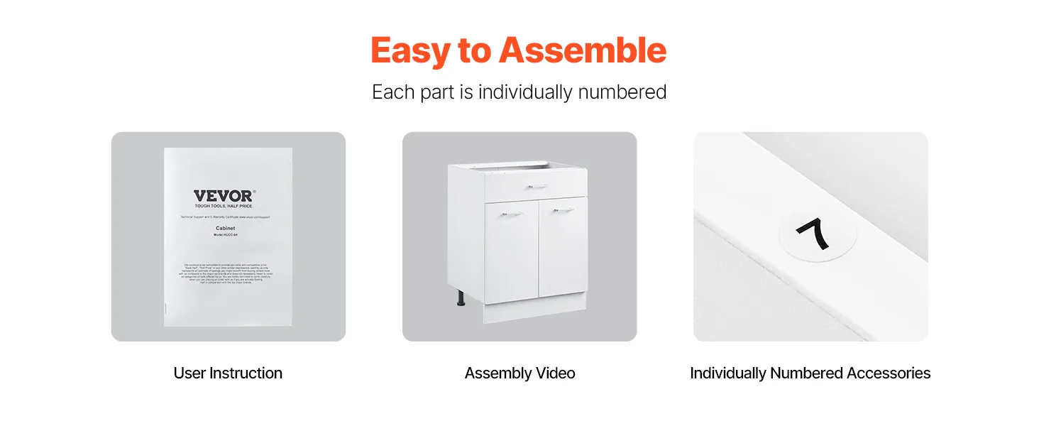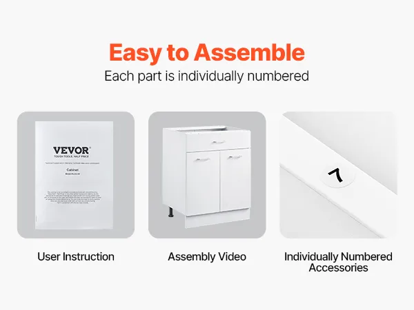 Easy to Assemble: Our unassembled cabinet is easy to assemble. The instruction manual is detailed, and each part is individually numbered for easy identification. The door direction is adjustable to suit your needs. The cabinet does not include a top surface