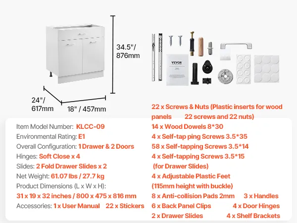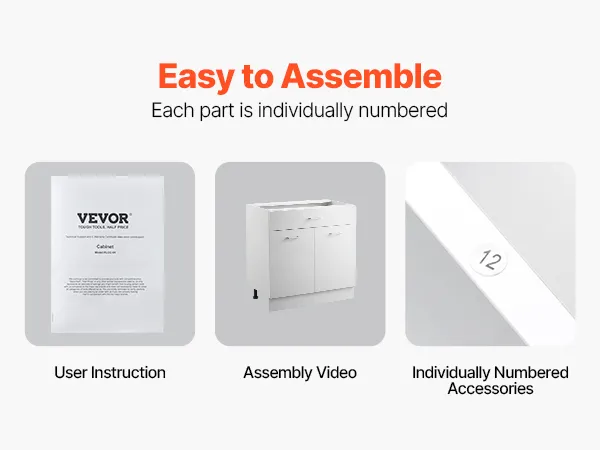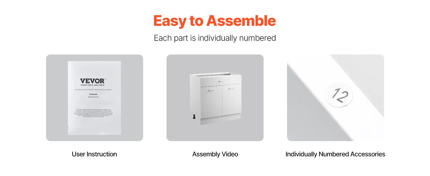 Easy to Assemble: Our unassembled cabinet is easy to assemble. The instruction manual is detailed, and each part is individually numbered for easy identification. The door direction is adjustable to suit your needs. The cabinet does not include a top surface