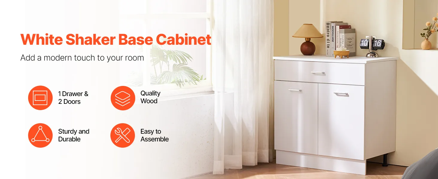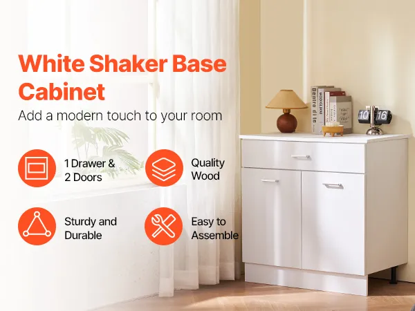 VEVOR White Shaker Base Cabinet with Drawer, 31-Inch Unassembled Drawer Base Cabinet, 31" W x 19" D x 32" H Ready to Assemble Cabinet with Soft-Close Doors and Adjustable Shelf, for Home Office