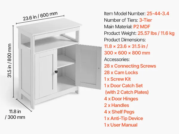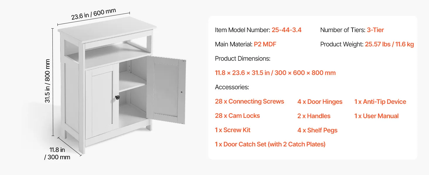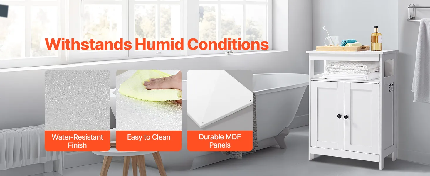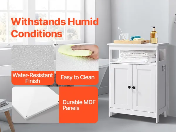Water-Resistant & Easy to Clean: Made from premium MDF with a waterproof coating, this white bathroom cabinet stands up well to humidity. It's easy to wipe clean and ideal for bathrooms and kitchens