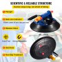 The 8" vacuum suction cup has a strong vacuum holding capacity, enabling it to suck and move 330 lbs of objects. It is also equipped with a patterned rubber suction cup to increase suction.