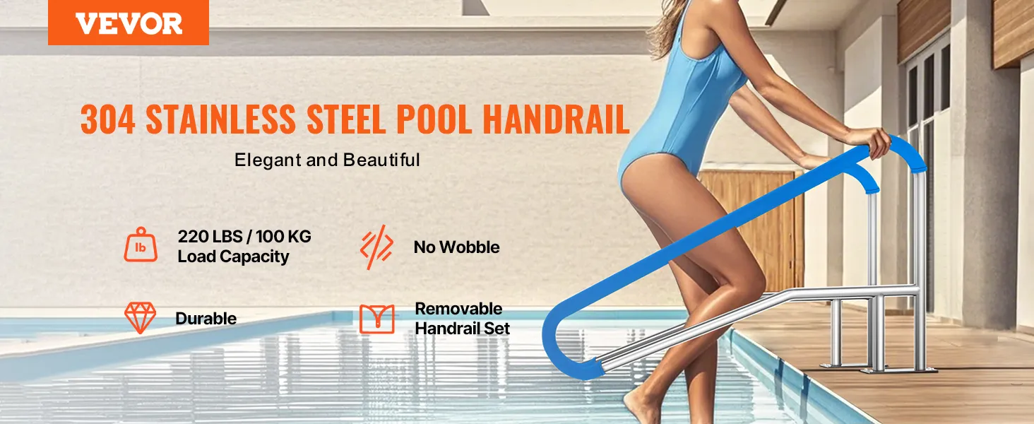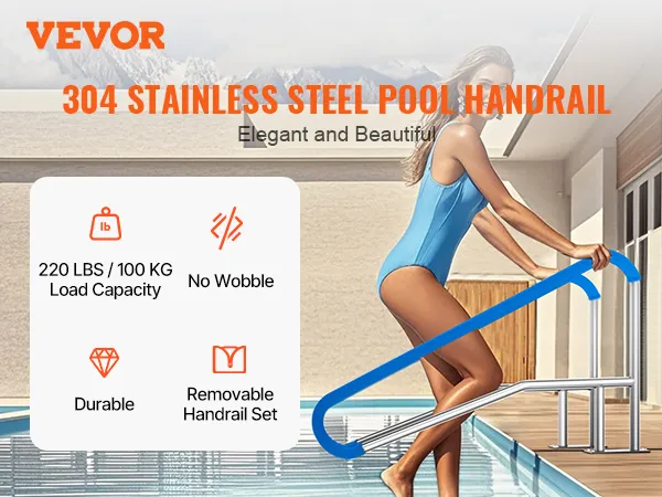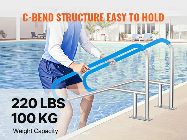 Supports Up to 250 lbs: With exceptional weight capacity, our pool safety rails provide secure support for both adults and children. The seamless one-piece design is sturdy and durable, with thickened pipe walls and base for added strength.