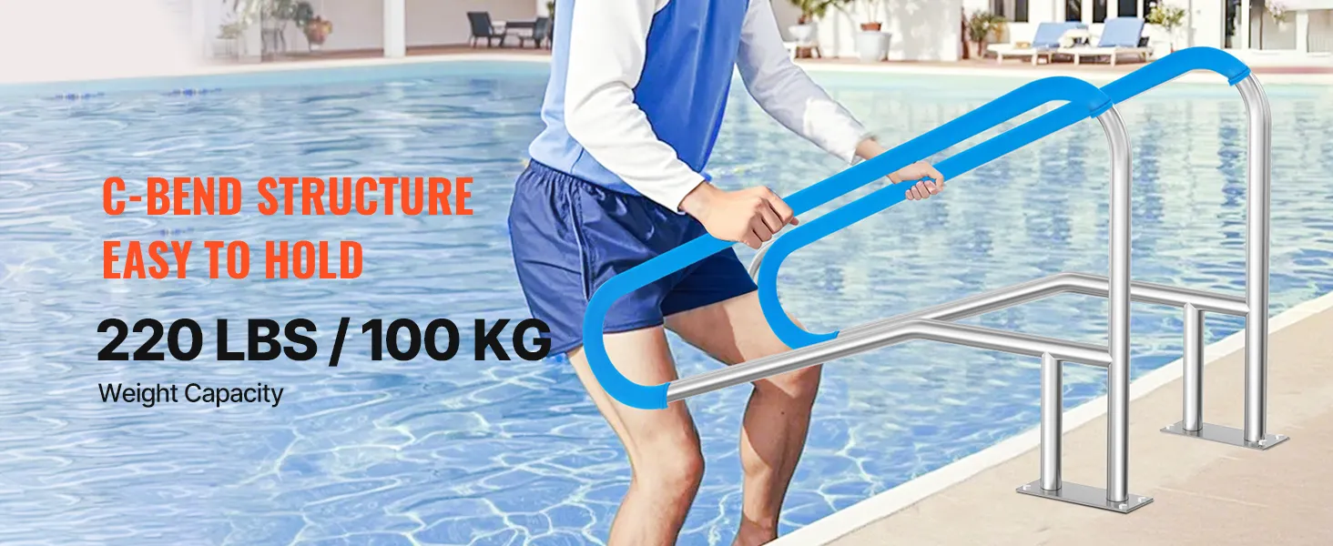 Brand new stainless steel handrails, specifically designed for pools. Impact-resistant and deformation-proof, equipped with non-slip handrail grips for secure support. Choose our handrail products for lasting safety when boarding.