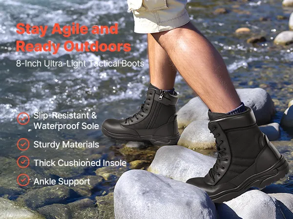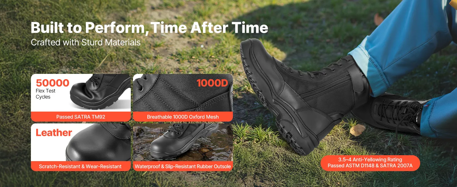 Lightweight & Breathable: Made with high-quality leather and 1000D Oxford fabric, these men combat boots are abrasion-resistant and breathable, keeping your feet cool and dry for long periods, with triple-stitched seams for added durability