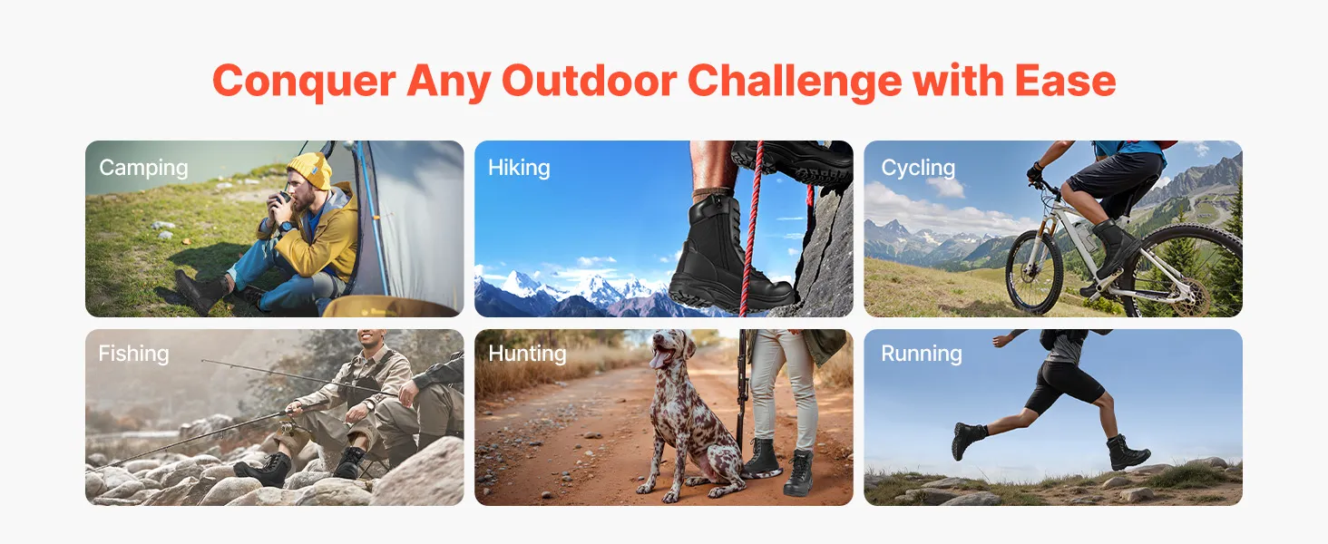Suitable for camping, hiking, cycling, or hunting, these boots can handle a wide range of outdoor needs, providing solid support and protection for every outdoor exploration and challenge.