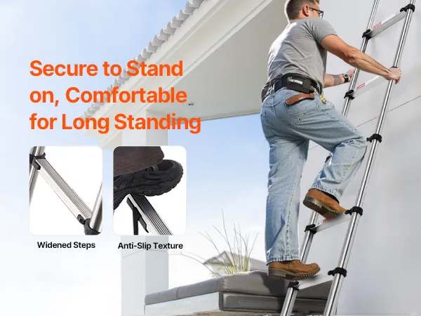 • Widened Steps: The steps of this extension ladder have been expanded to 1.5 inches for a more comfortable and stable standing surface. This helps reduce fatigue during long periods of standing, making it easier to complete high-altitude tasks