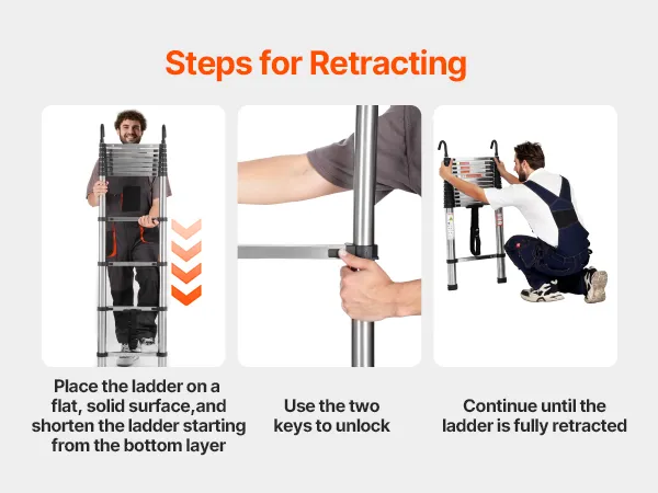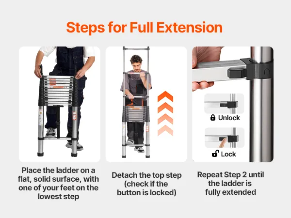 • Multi-Button Retraction: This collapsible ladder features individual locking switches on each step, making it easy to operate and adjust to your desired height for simple and convenient use