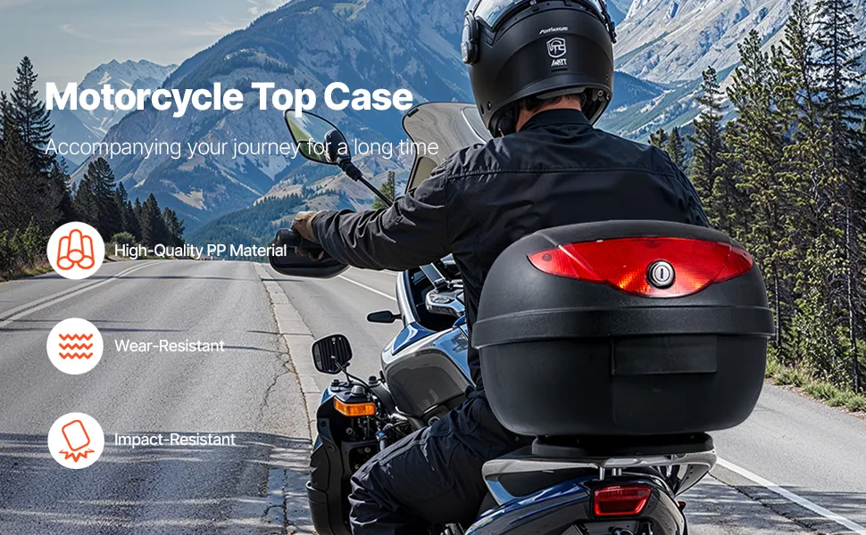 Our plastic motorcycle trunk adds convenience to your daily travels. It’s impact-resistant and can easily withstand rain and snow. Enjoy unbeatable security and peace of mind, knowing that your riding essentials are securely stored.