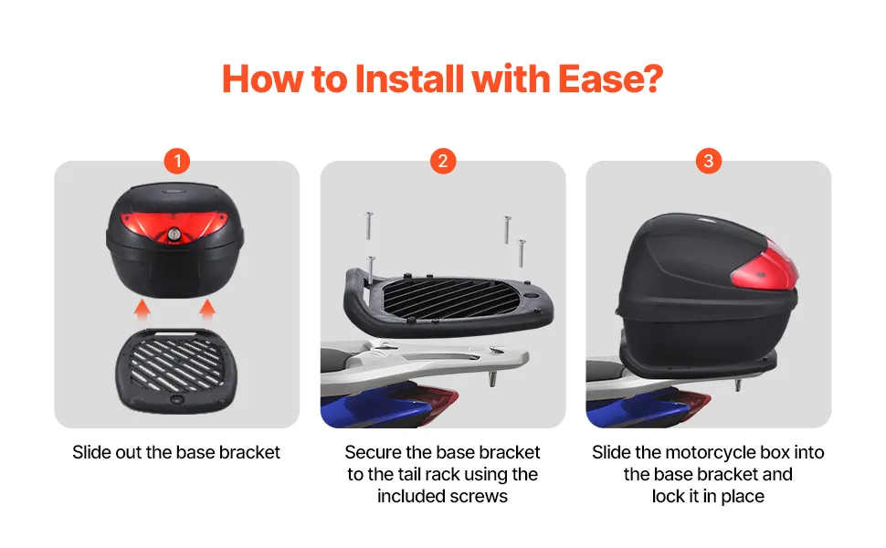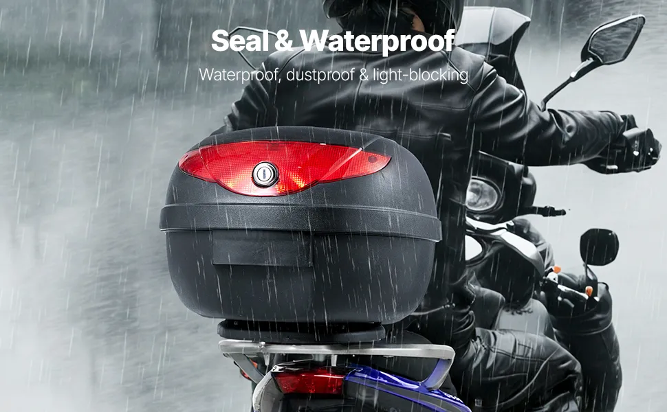 Thanks to the sealed design, Items inside the motorcycle top box stay dry and secure, so you can ride in any weather without concern.