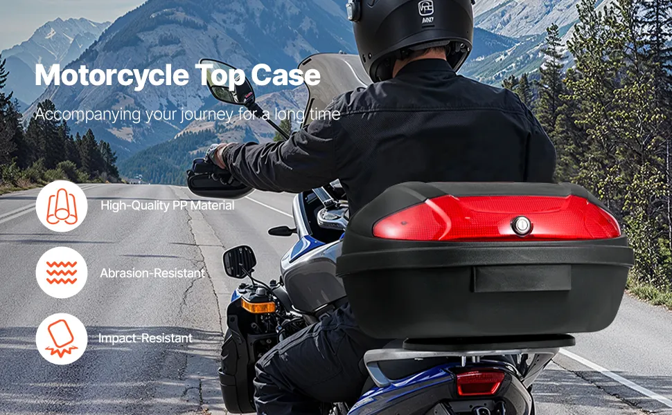 Our plastic motorcycle trunk adds convenience to your daily travels. It’s impact-resistant and can easily withstand rain and snow. Enjoy unbeatable security and peace of mind, knowing that your riding essentials are securely stored.