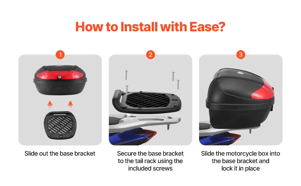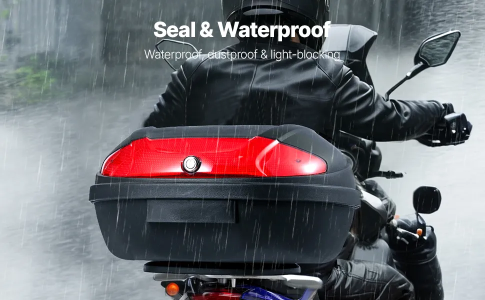 Thanks to the sealed design, Items inside the motorcycle top box stay dry and secure, so you can ride in any weather without concern.