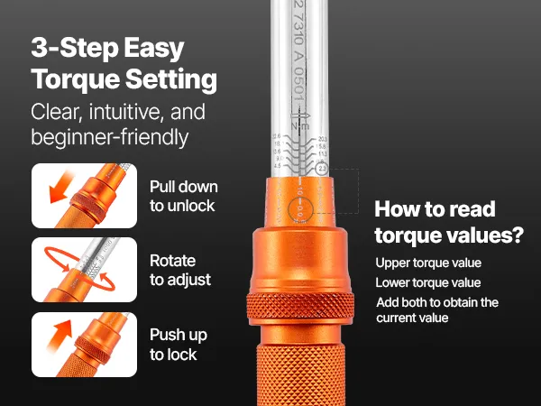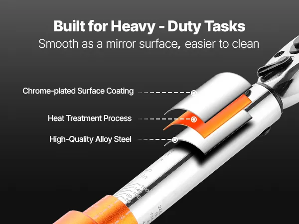 Durable Construction: Our click torque wrench is made from high-quality alloy steel with a six-stage heat treatment process. The chrome-plated surface is rustproof, providing a smoother finish that's easy to clean