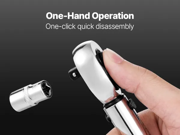 Efficient Operation: Equipped with a reversible ratchet head, the torque wrench set drives in both directions. Quick and easy to change sockets with one hand, boosting work efficiency