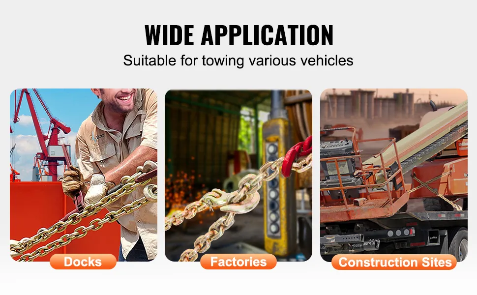 Wide Application: This heavy-duty log chain is perfect for securing cargo. It is a great fit for factories, construction sites, mining activities, ports, and more.