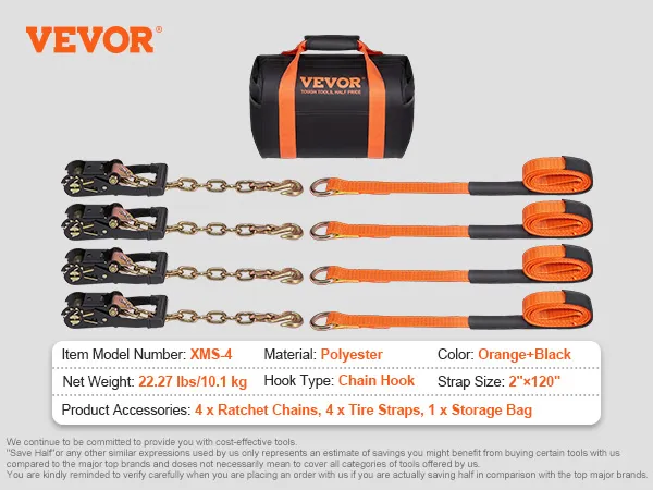 It's a great idea to have all the straps in your car tie down bag. The VEVOR car tie-down strap comes with a handy storage bag, which keeps all of them organized and ready to use. Easy setup process means you can secure your cargo quickly. No matter if you're on the go or need an effortless solution, these straps are perfect because the convenience of having everything in one place makes transportation easier. You won't have to worry about misplacing any parts. Our VEVOR strap is designed to make your life easier! Experience the ease and efficiency of these car clip down bags.
