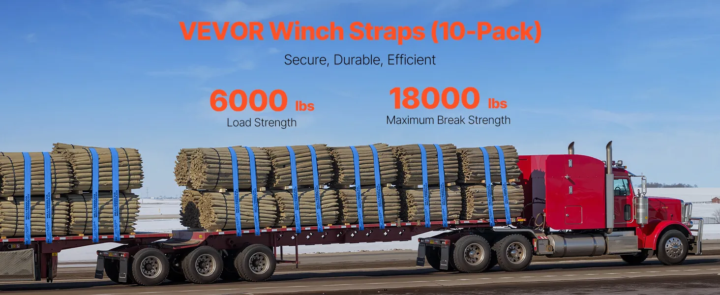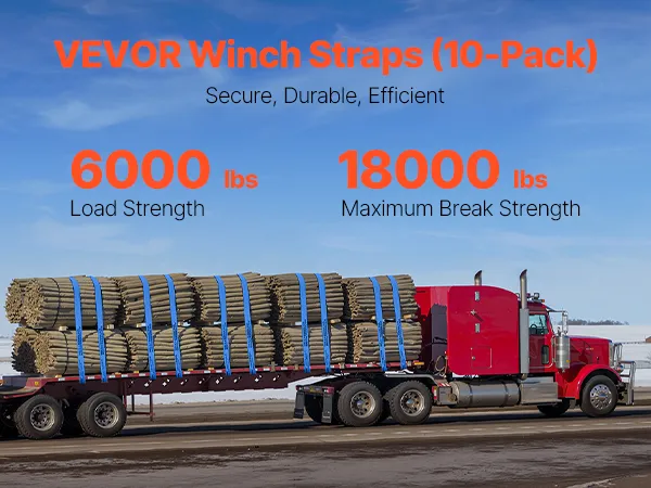 What is the breaking strength of VEVOR winch straps? The VEVOR's winches have a breaking force of 18000 lbs. This high-breaking strength adds an extra layer of safety to your vehicle. You can be confident that the straps won't fail under heavy loads. Its strength ensures that your cargo stays secure, even in tough conditions. The strong design of these straps makes them a dependable choice for securing heavy items. Knowing the straps can handle significant force gives you peace of mind. These straps' breaking strength makes them reliable and safe for securing heavy items.
