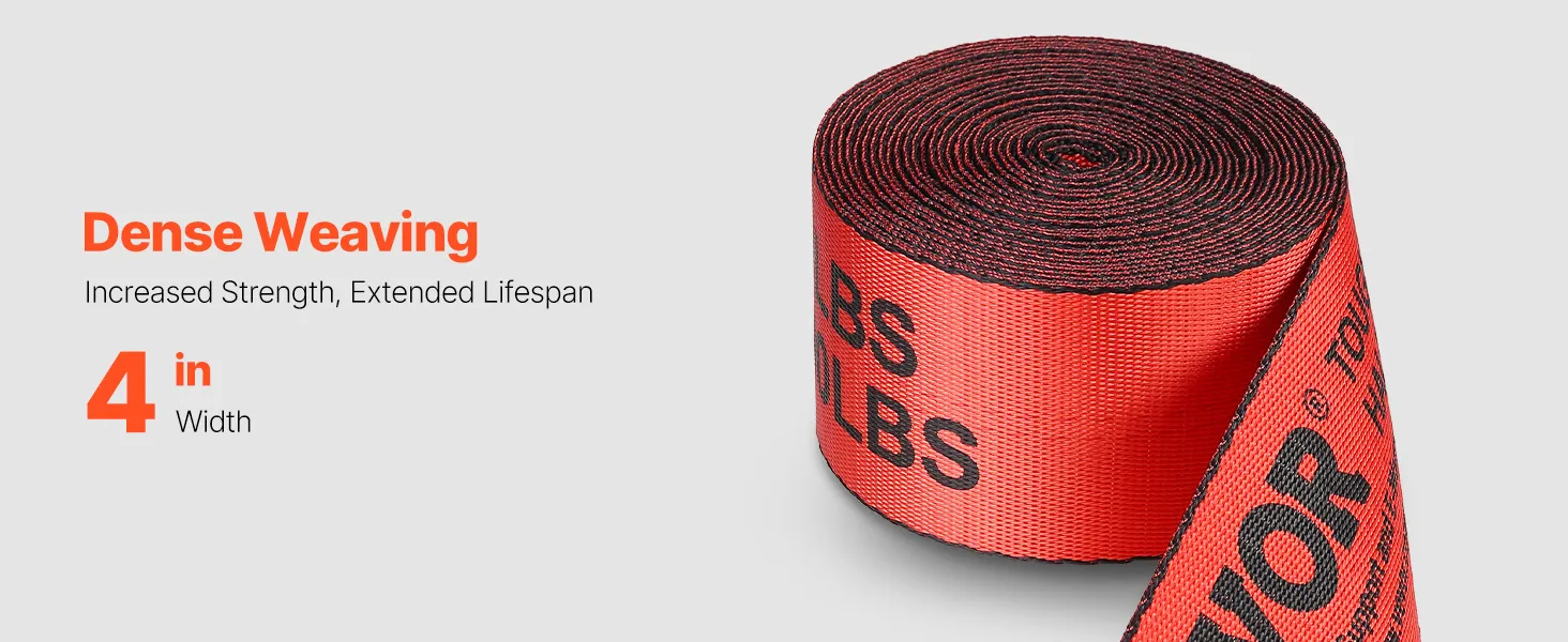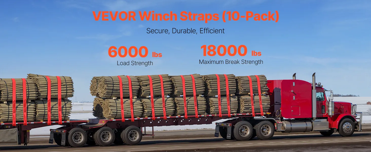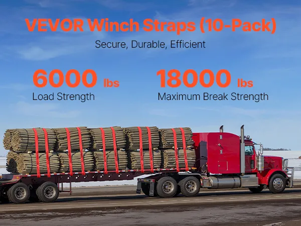 Our VEVOR winch straps are made from high-quality polyester. They can handle the toughest jobs easily. With a load capacity of 6000 lbs and a reversing strength of 18000 pounds, these straps are perfect for securing heavy loads. They provide superior strength and reliability for all your cargo control strap needs. The strong construction ensures they endure the harshest conditions without sacrificing performance. These straps are ideal for truck drivers, farmers, and anyone needing reliable tie-down solutions.