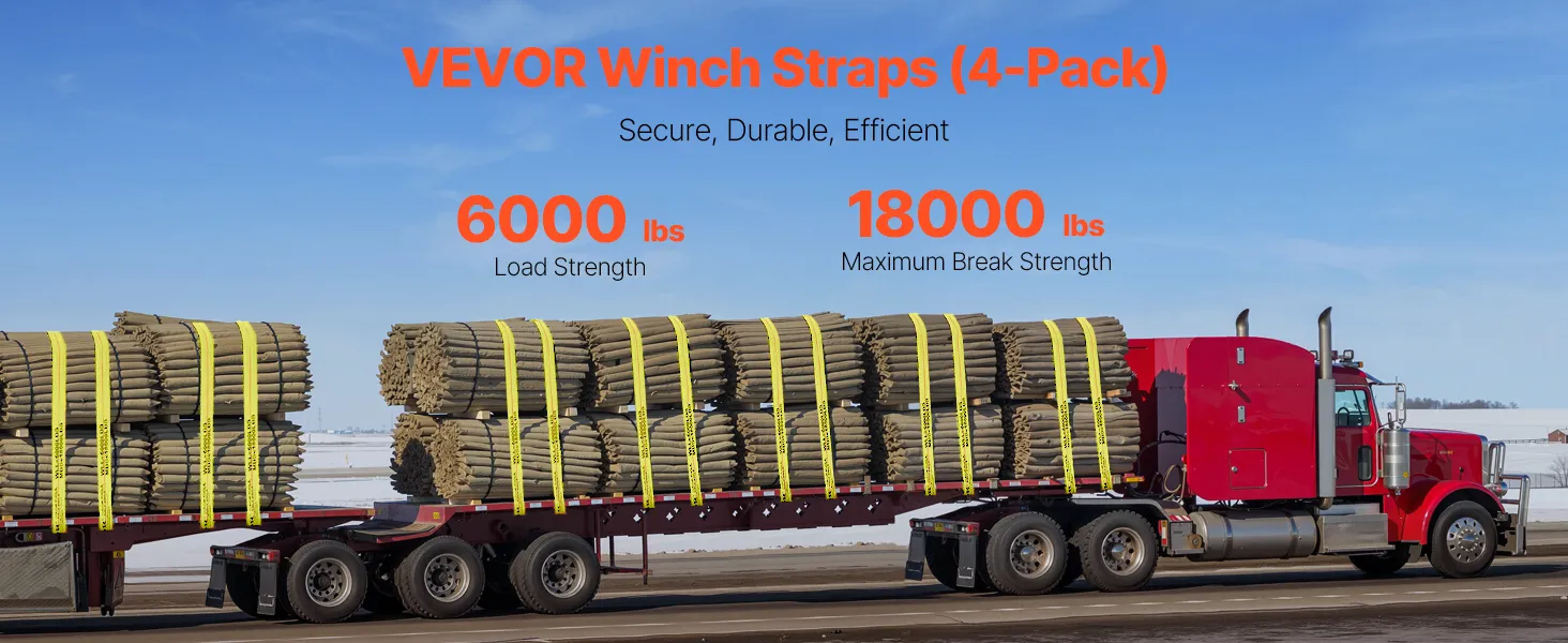 All of these VEVOR winch straps offer exceptional durability and strength. Made from high-quality polyester, they can handle heavy loads easily. Each strap has a working load limit of up to 6000 pounds and a break strength of 18000 lbs. This makes them ideal for securing heavy cargo. The robustness of the carbon structural steel flat hooks ensures a firm hold on the loads. These straps are perfect for truck drivers, farms, and rescues. They provide reliable performance in various scenarios. Their durability ensures long-lasting use, making them a valuable investment for cargo control needs. Choose VEVOR winch straps for outstanding strength and reliability.