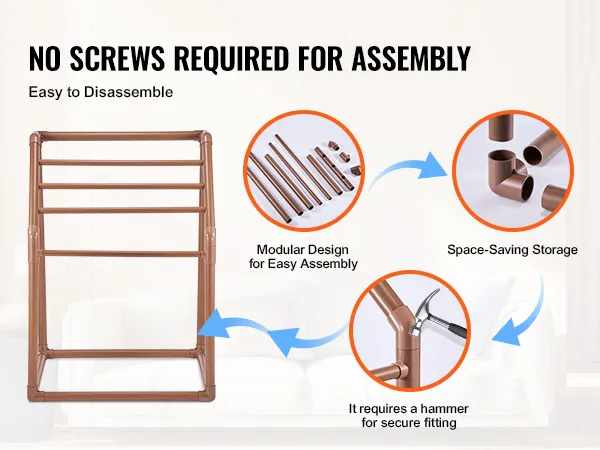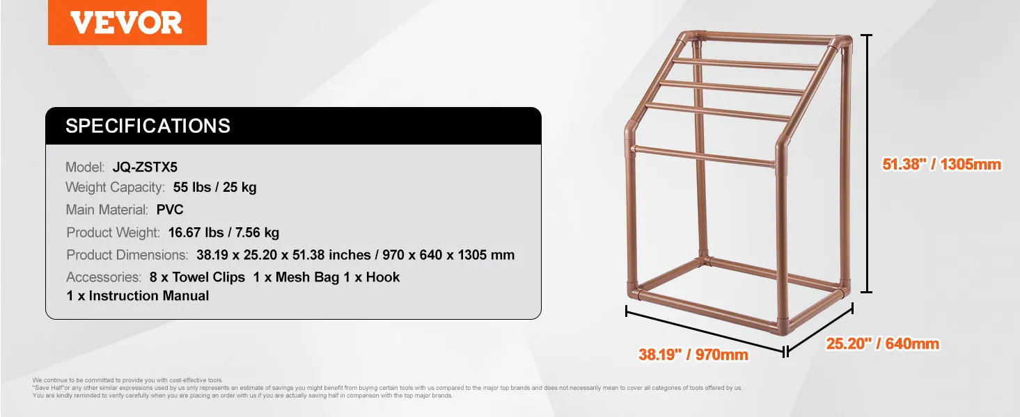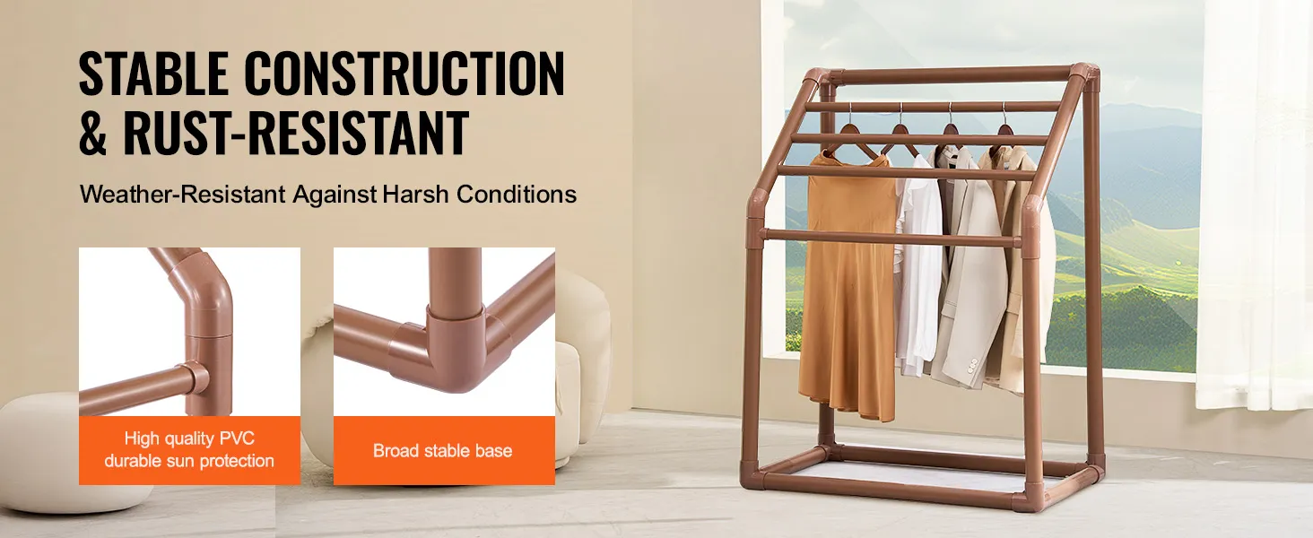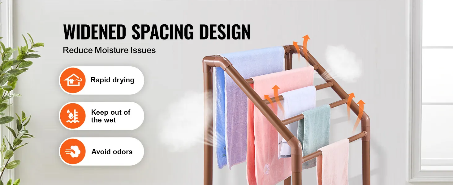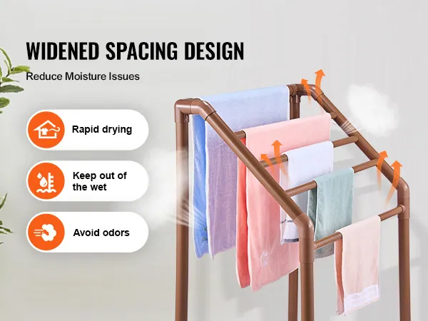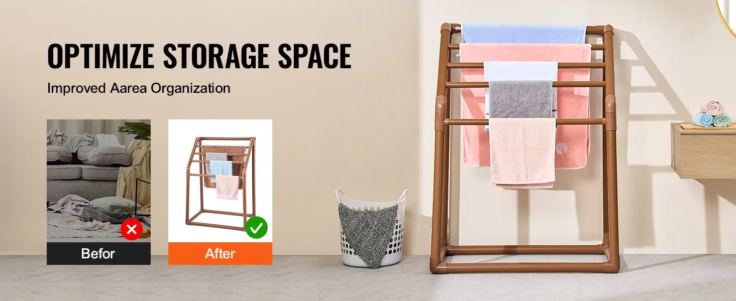This freestanding towel rack is made from heavy-duty furniture-grade PVC. This material resists rust and corrosion, ensuring durability. The beautiful brown color adds an elegant touch to any setting. The best part about the PVC structure is its UV-blocking feature, which prevents color fading. It makes it ideal for long-term outdoor use and requires minimal maintenance. You can enjoy a long-lasting, reliable towel rack. Premium-quality PVC ensures that the rack can handle various weather conditions. It is advisable for anyone who needs a durable towel rack to invest in this one.