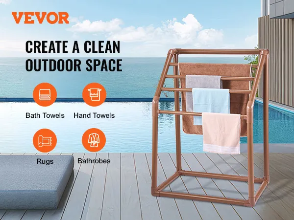 The VEVOR pool towel rack is perfect for hanging multiple large towels. It keeps them off the ground, ensuring they stay clean and dry. The rack also works well for storing wet swimsuits, pool floats, and other gear. This versatile rack helps keep your space organized and tidy. You can use it poolside, on beach trips, and during lake outings. Great for any outdoor activity that involves getting items wet. The good size of the rack ensures stability even with heavy loads. The trapezoidal shape adds to its stability and functionality.