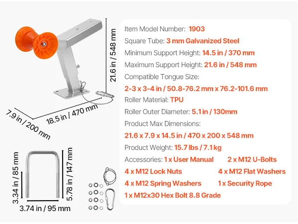 U-Bolt Included: Compatible with 2-3'' W X 3-4'' H trailer tongues, the U-bolt quickly locks into place for a secure fit. The trailer winch stand is easy to install and ensures the trailer stays stable without any wobbling during transport