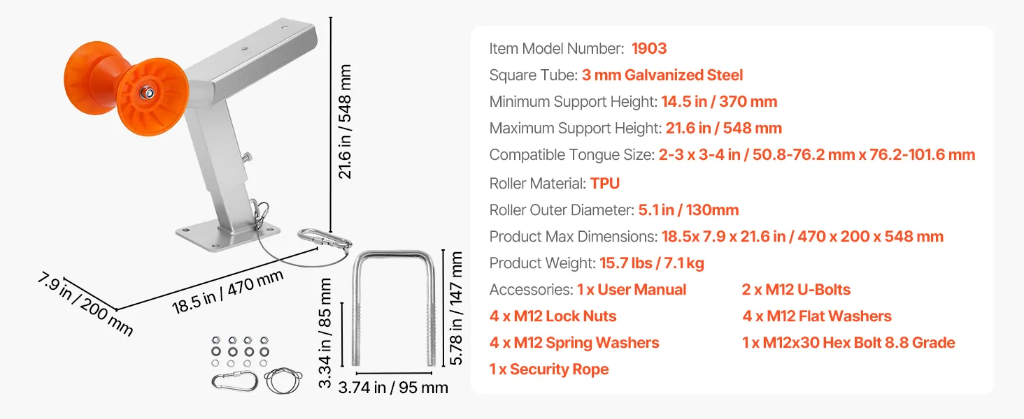 Adjustable Height: With an adjustable height range of 14.3-21.6 inches, this boat trailer winch post accommodates a wider variety of boats, providing greater versatility for all your boat transportation needs.
