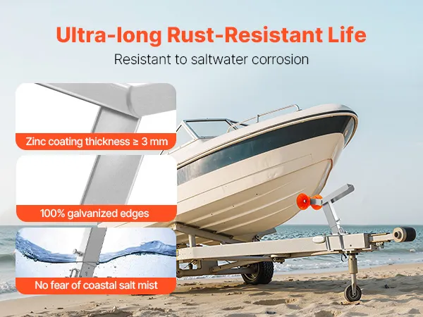 Made from rust-resistant galvanized steel, this boat winch stand provides a height adjustment range of 14.3-21.6 inches. Equipped with PVC anti-scratch rollers, it ensures stability and long-lasting durability.