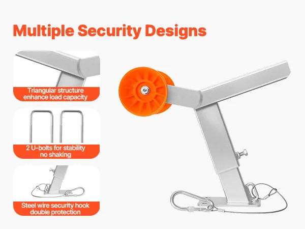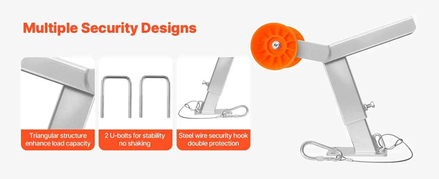 5.1-Inch Large Roller + Security Rope Hook: The roller system of the boat trailer winch stand minimizes friction between the cable and the boat. The bottom security hook provides an additional anchor point for the boat, avoiding accidental detachment and ensuring a secure fit