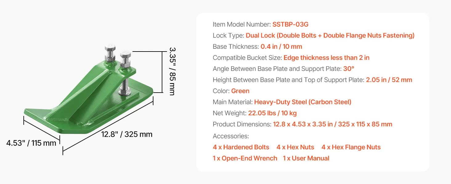 Double-Lock Design: Unlike single-lock protectors, our bucket edge tamer features a double-lock design for stronger fastening. Bolts have nuts top and bottom, plus larger M14 threads, ensuring a stable connection for reliable use.