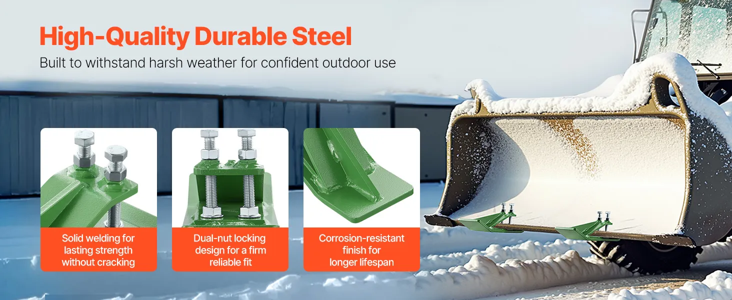 Made from quality steel with solid welding, this tractor bucket edge tamer stands up to harsh weather. The double-nut lock fits tightly on the bucket edge, avoiding detachment. Corrosion-resistant coating extends its lifespan for outdoor tasks.