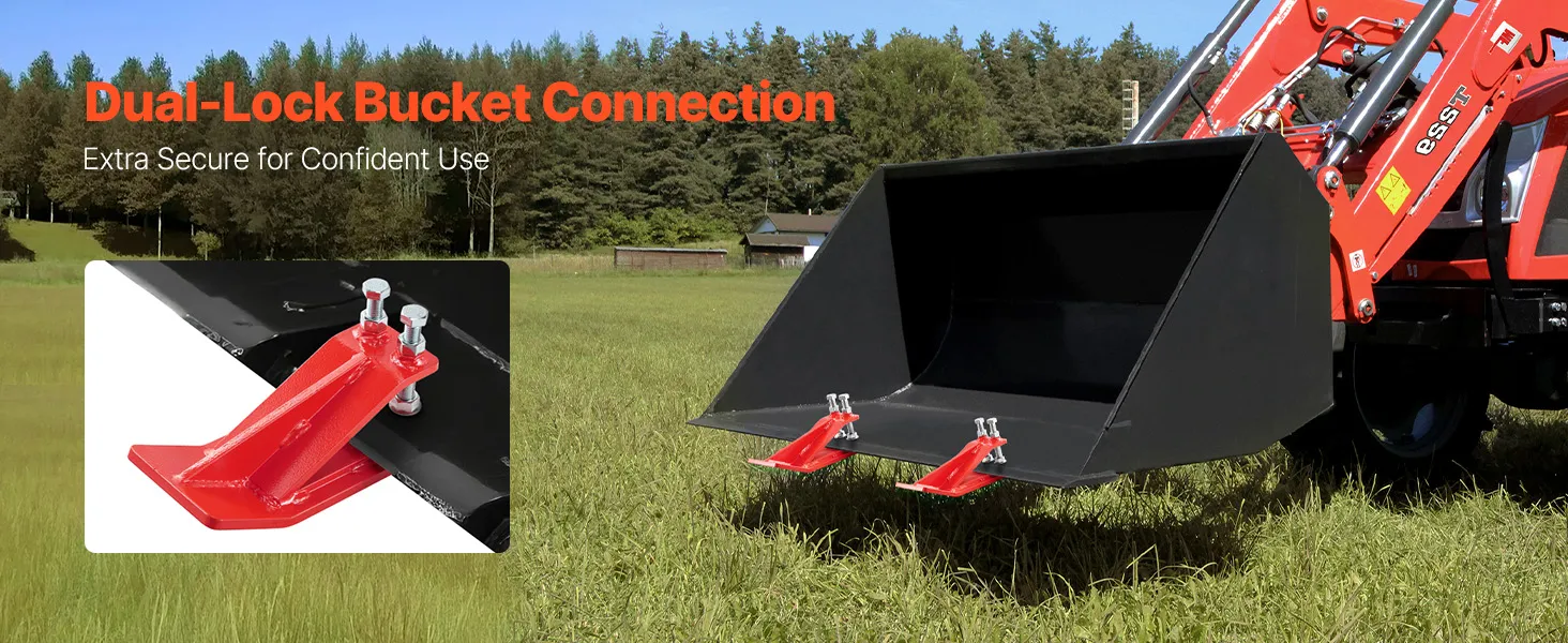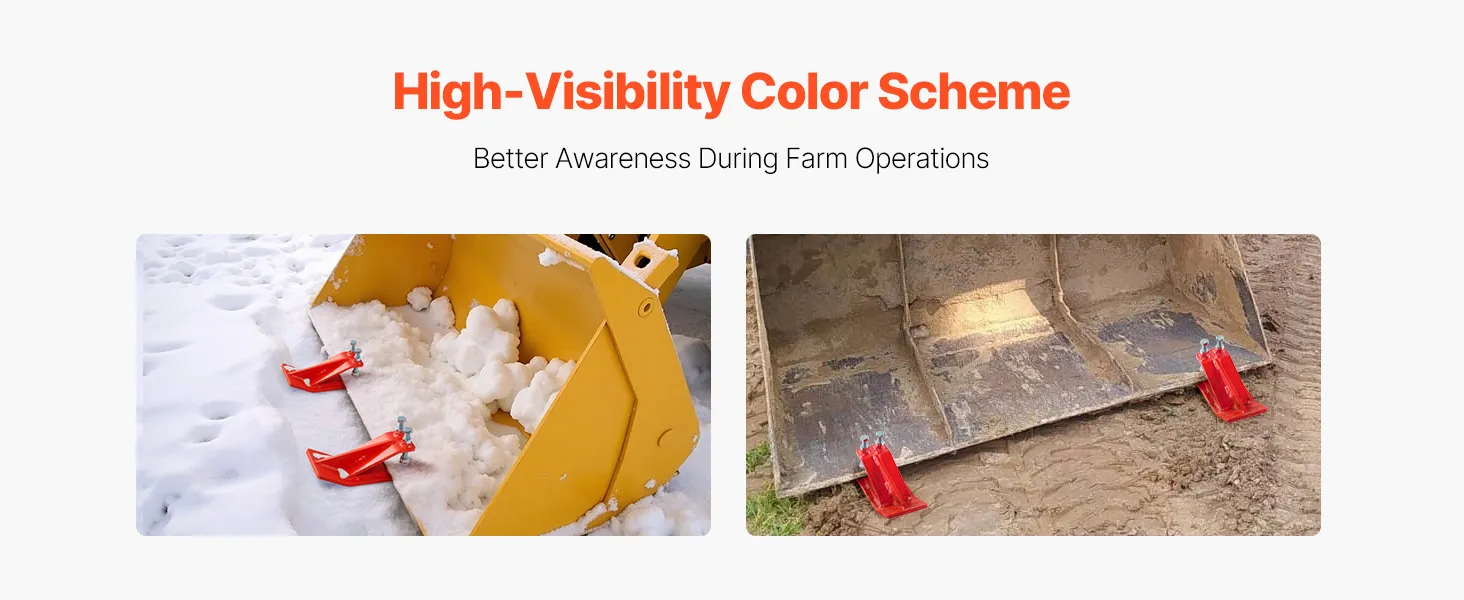 The bright warning colors on this bucket edge tamer make it easy to see during farm work, helping reduce accidents and providing better security for you and others.