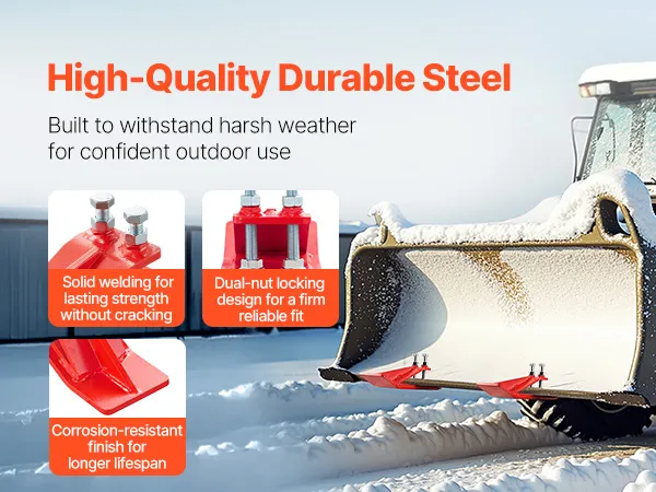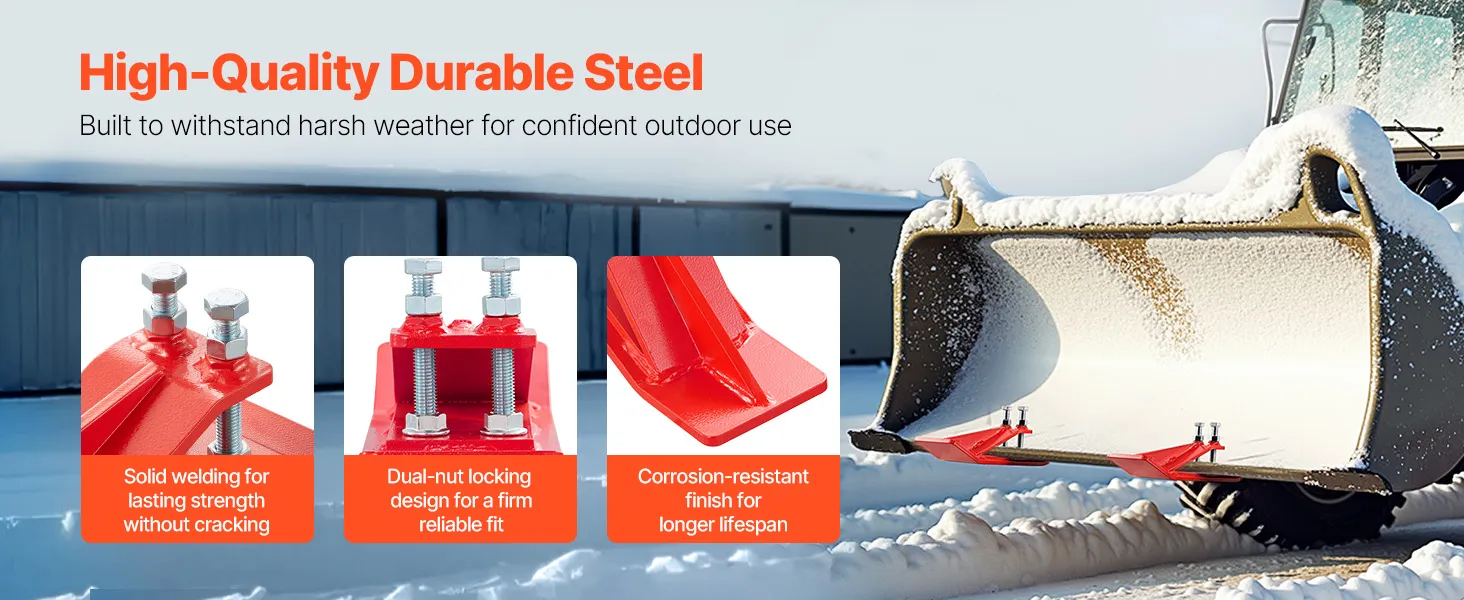 • Durable Construction: Our bucket protector is made of heavy-duty steel with fine welding, ensuring strong and reliable joints that won’t break easily. It helps guard tractor bucket edges, reducing ground and road damage during snow removal.