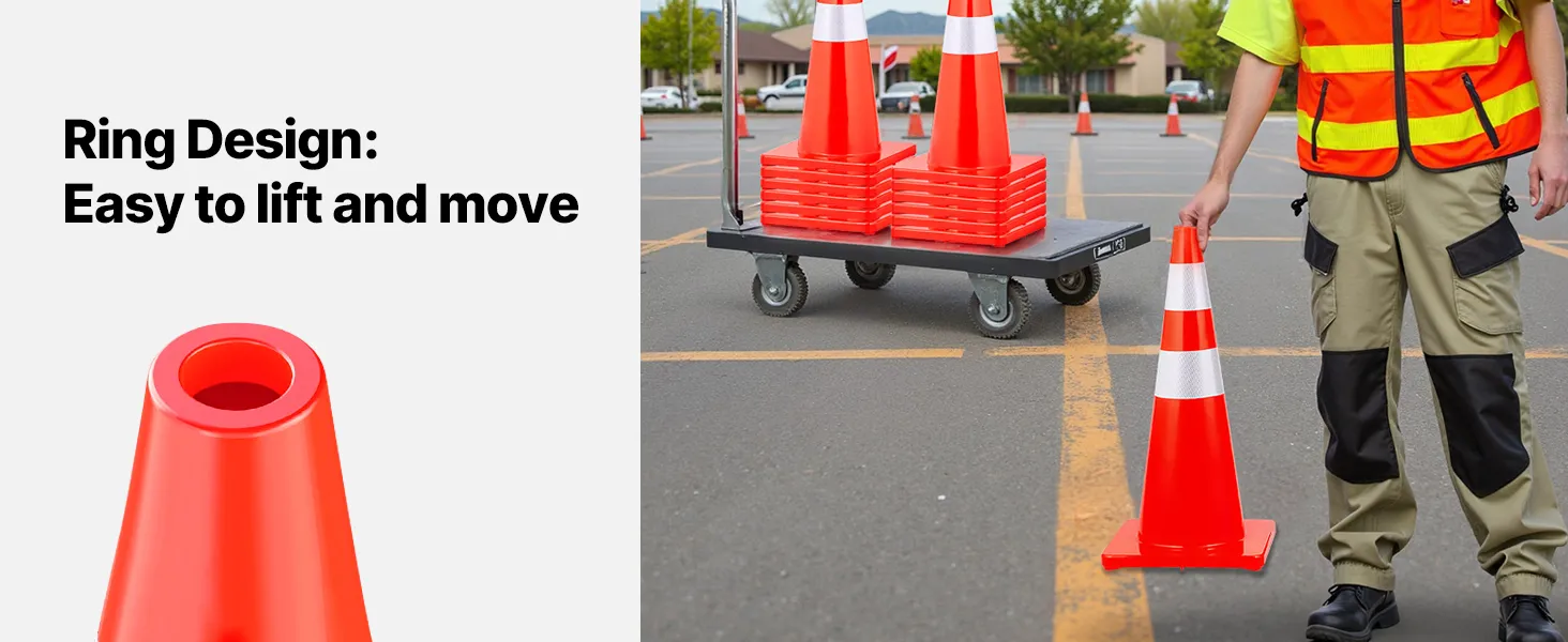 Every cone has two reflective collars. These are bright and easy to see. They improve visibility, especially in low-light conditions. This added visibility helps boost safety. The reflective tape is easily removable and replaceable, which ensures the cones stay visible for a long time. No matter if used on roads, parking lots, or in arenas, these cones stand out because they help keep people safe.