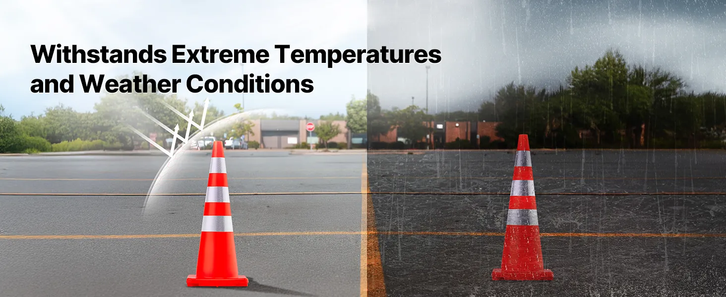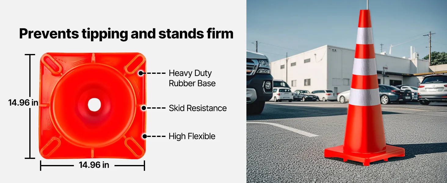 They are dependable safety cones, which means they're always stable. Their weighted base guarantees their stability. This feature ensures they stay upright, even in windy conditions. No matter if you use them for traffic control, parking management, or event organization, you can be sure they will stay in place. The weighted base also helps them withstand impacts, making them suitable for busy environments. As a result, their strength means that you can trust them to mark boundaries and direct traffic without constant supervision.